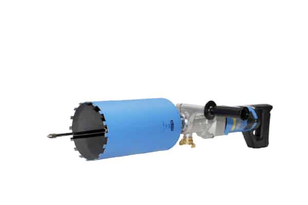 Carotatrice a secco, piccola, maneggevole e pulita, con impugnatura laterale. Per fori su mattoni e